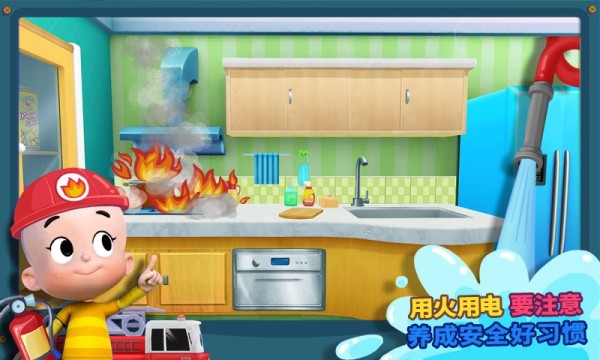 最吸引人的是那些藏着安全知识的小机关!打开冰箱会弹出食物分类挑战,碰到插座会有卡通版电流特效提醒危险,就连爬高取物时也会出现防摔提示。游戏把用火安全、利器防护等9个居家安全知识点做成了互动故事,比如火灾逃生演练就设计成收集灭火器扑灭小火苗的闯关模式。双语系统随时切换,中文语音念苹果的同时会蹦出Apple的泡泡字幕。春节版本超有爱,能给小头爸爸换唐装,用星星币兑换老虎玩偶等限定装饰,完成每日任务还能领红包奖励。