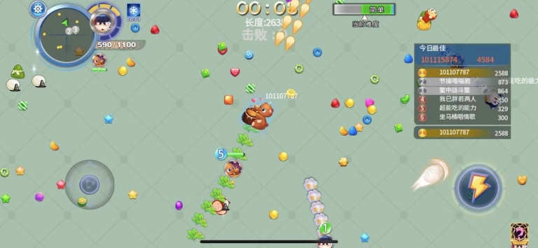 在贪吃蛇蛇大挑战中,玩家需要控制自己的小蛇在地图上灵活移动,吃掉彩色光点来增长身体长度。游戏最特别的地方是加入了卡牌玩法,你可以一边吃豆子一边用卡牌发射子弹,打中其他蛇还能让它们掉落豆子。每局游戏都充满变数,既要小心别撞到其他蛇的身体或墙壁,又要抓住机会击败对手。随着游戏进行,难度会逐渐提升,障碍物增多,食物减少,非常考验反应速度和策略思维。游戏还设计了丰富的排位赛和挑战模式,让你能持续体验新鲜感。
