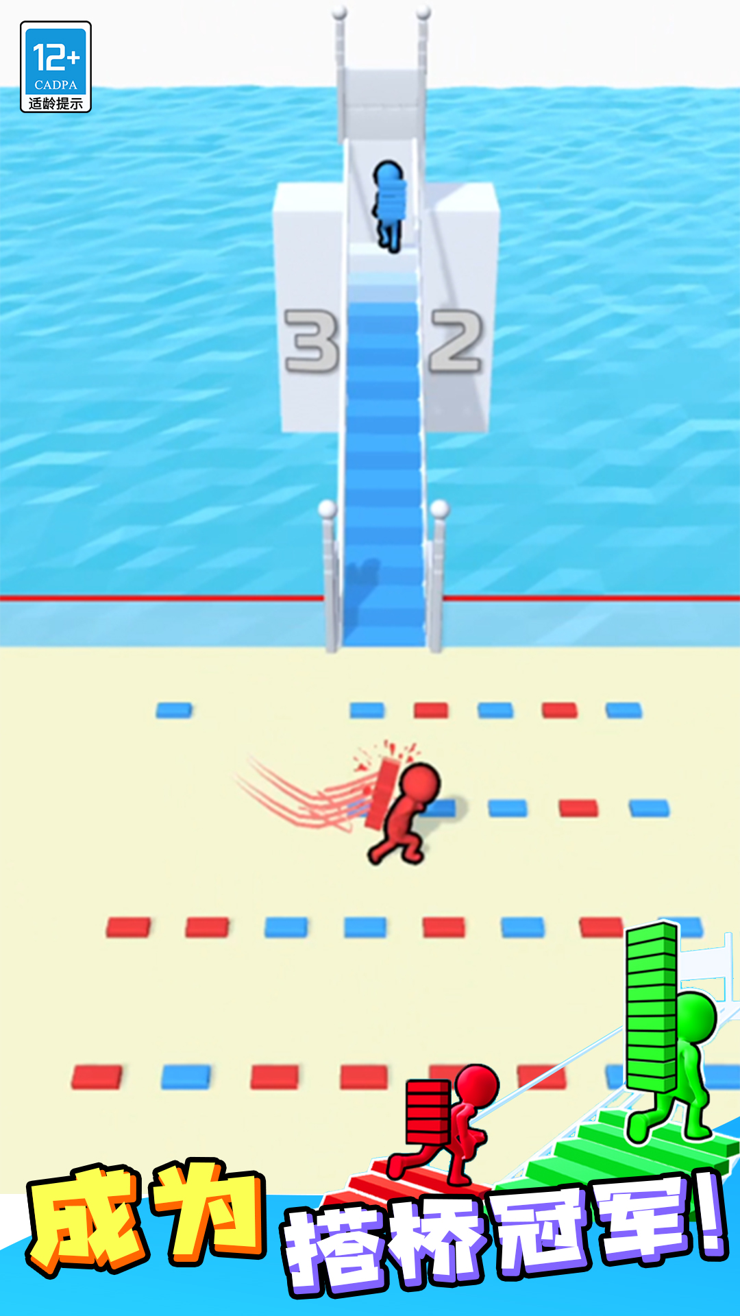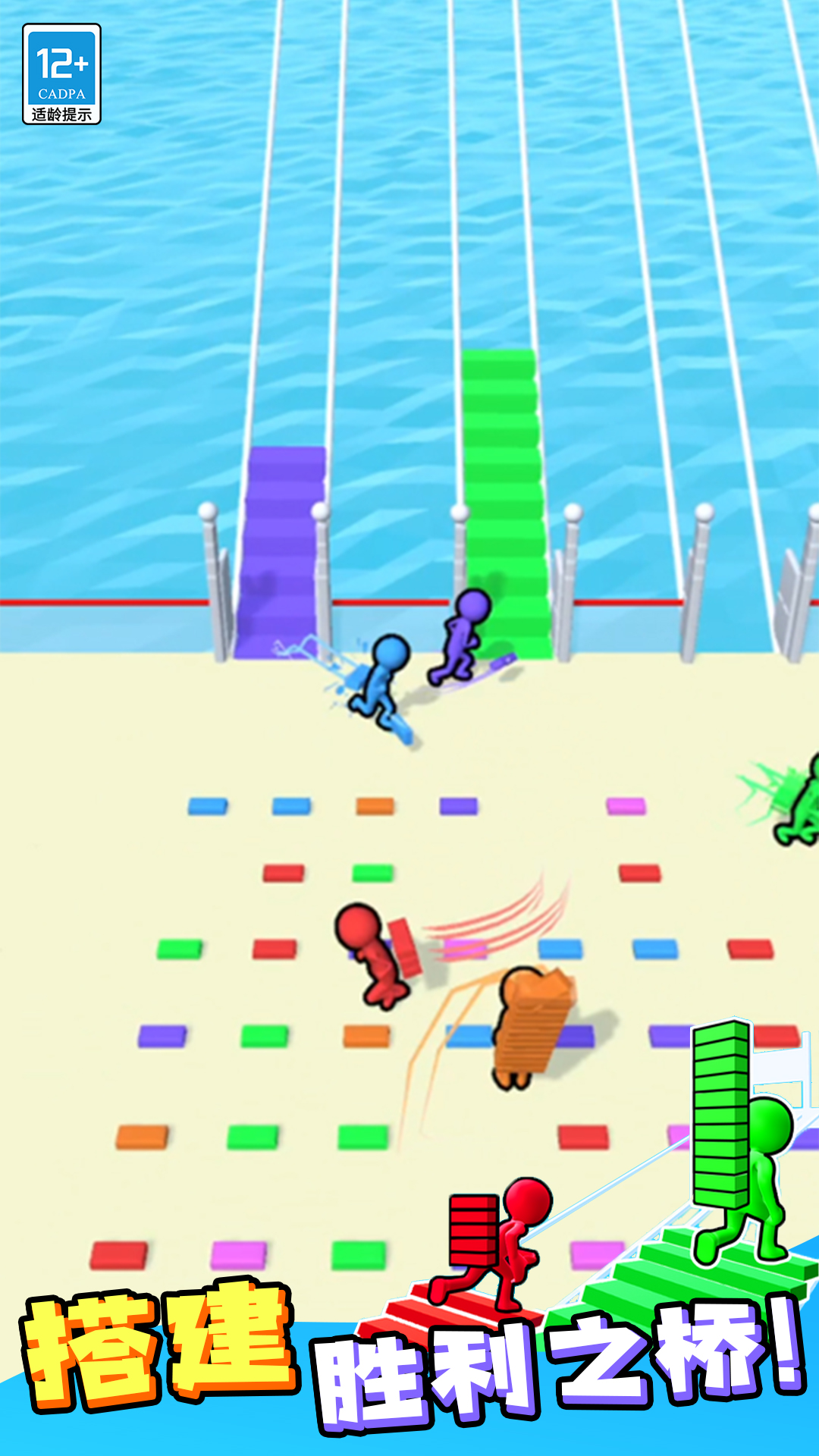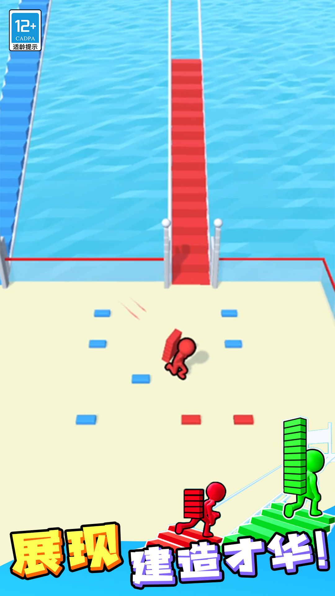 亲爱的玩家们,今天要给大家安利一款超有趣的休闲竞技手游——搭桥冲冲冲!这是一款集创意搭建和多人对抗于一体的游戏,咱们可以和其他小伙伴同场竞技,一边抢积木一边搭桥,看谁最快冲到终点。游戏画风是那种可可爱爱的卡通风格,角色都是萌萌的橡皮人,玩起来轻松又解压,特别适合碎片时间来一局。