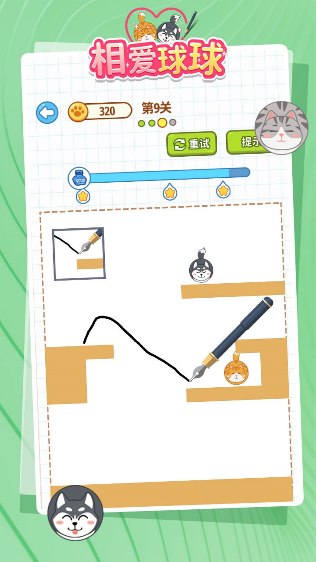 这款游戏的治愈力MAX。萌萌的猫狗球球会做各种表情互动,像在看动画片一样。背景音乐轻快动听,成功通关时的音效特别有成就感。关卡设计暗藏玄机,同一关可能有多种解法,脑洞大开才能拿三星。社交功能也很贴心,全球排行榜可以和高手PK,还能分享创意解法给好友。最棒的是完全免费无内购,所有内容都能通过游玩解锁,真正零压力享受游戏乐趣。