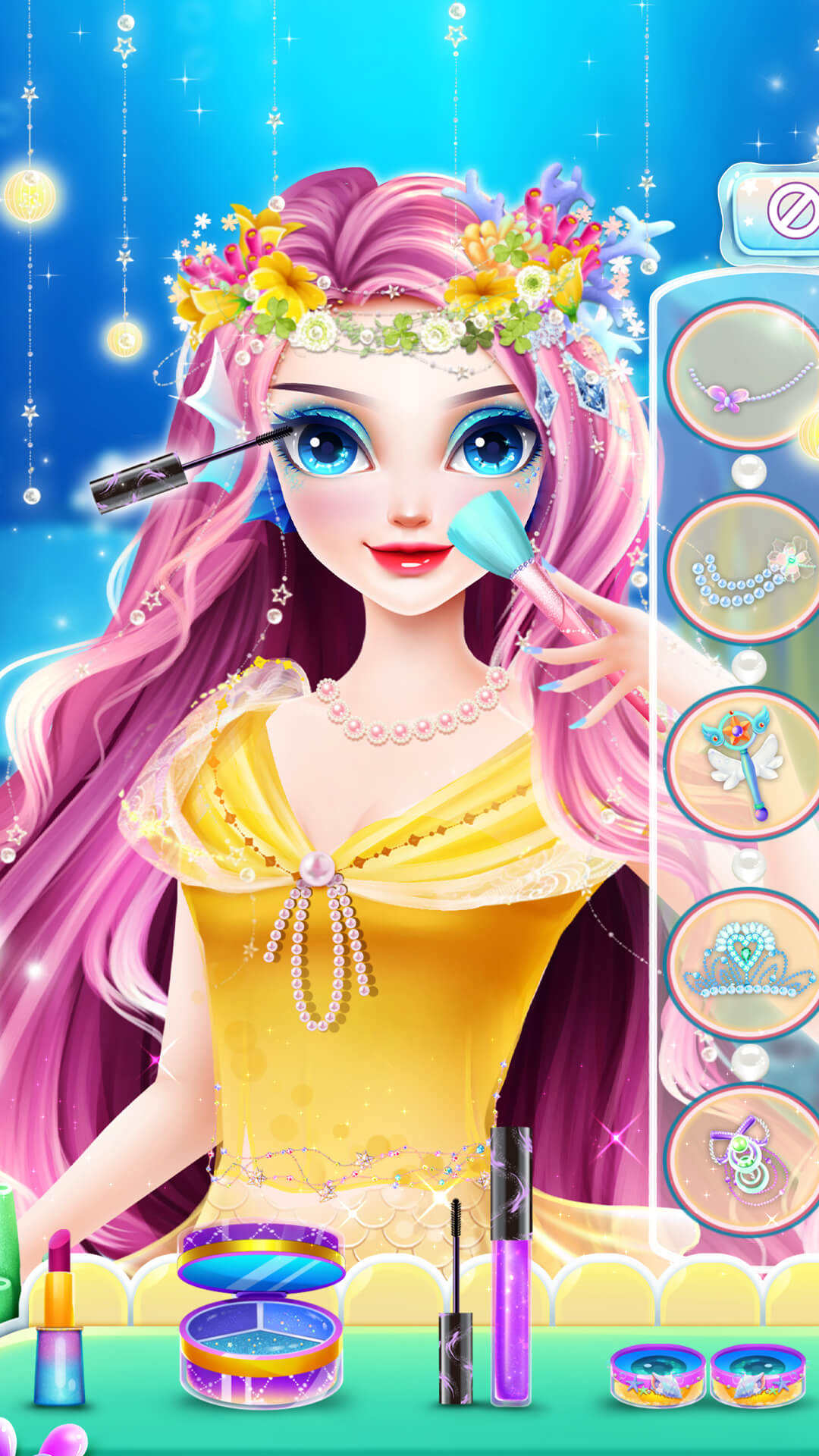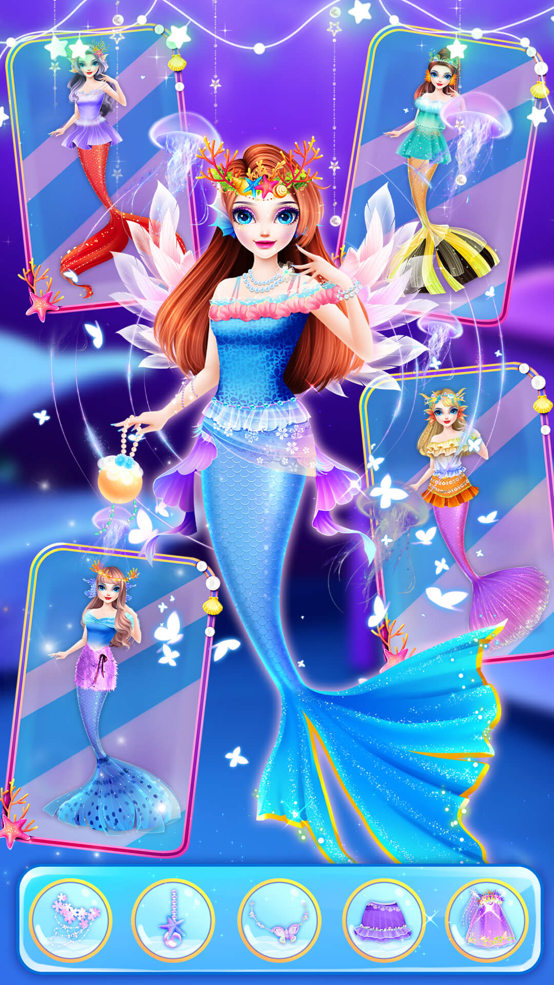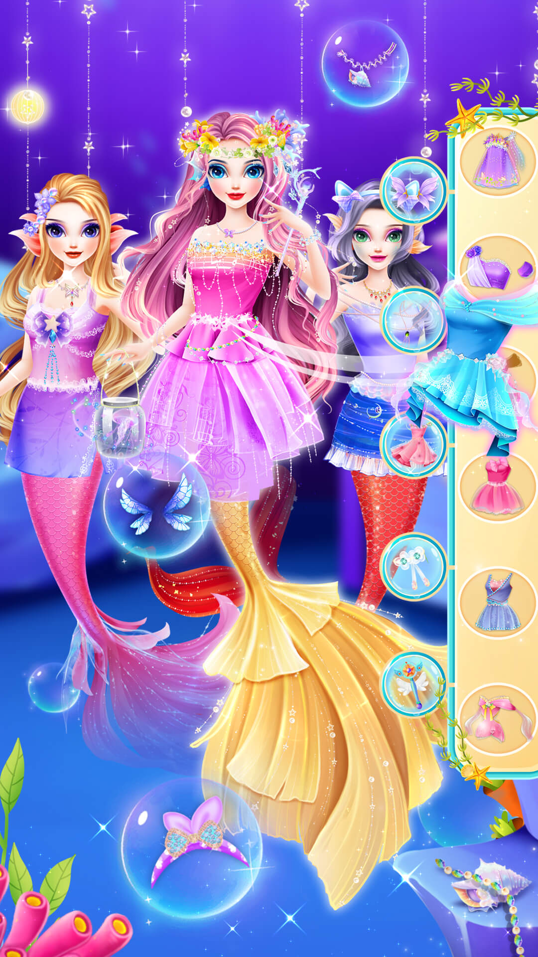 你将从一个简单的小任务开始,逐步探索海底城堡的各个角落。核心玩法包括根据场合需求为美人鱼公主搭配服装,比如在皇家仪式中选择华丽礼服,或在海底探险中配置实用配饰。游戏中提供数百种服饰、珠宝和化妆品供你选择,你可以自由组合,创造出专属风格。任务系统驱动故事发展,例如完成主题派对装扮后获得评分,并解锁新奖励。等级提升,还能参与社交活动与其他玩家互动,分享创意。海底场景设计逼真,波光粼粼的水面效果让你仿佛置身真实海洋。