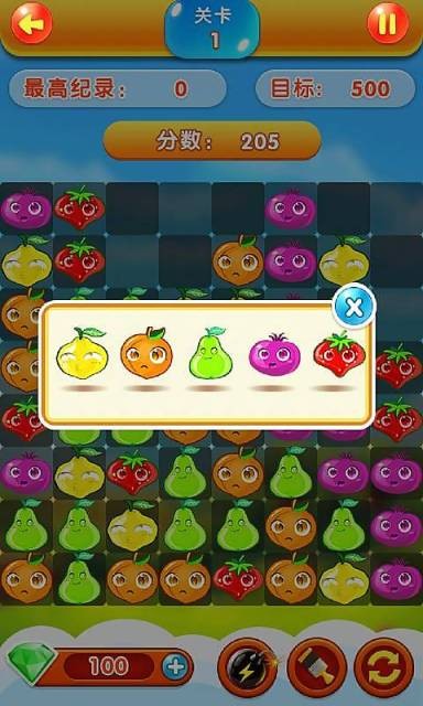 水果缤纷乐是一款简单有趣、耐玩性极高的三消玩法休闲益智游戏。在这里咱们需要找到相同的水果,将它们凑成三个或以上来进行消除,获得高分和道具奖励。这个宝贝不仅有着清新明亮的画面和动听的音乐,还有着各种有趣的关卡和挑战,每个关卡都有独特的设定、目标和难度,需要运用灵活的策略、技巧和智慧来解决。通过这场惊险刺激的水果之旅,小伙伴们可以放松身心,同时锻炼反应和思维能力。