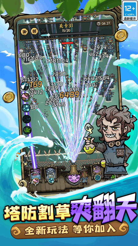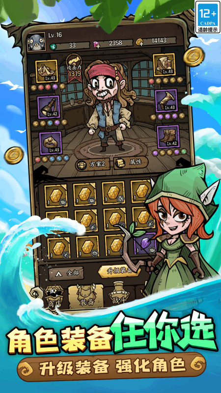 在勇者之海中,玩家置身于一个神秘而广阔的海洋世界,背景设定为海盗遭遇各种怪物围城。核心玩法包括闯关、塔防和技能系统:玩家需抵挡20波以上的怪物攻击,通过自动攻击机制简化操作;策略塔防元素允许建立炮台防御;技能学习则通过积累经验解锁新能力。游戏采用肉鸽机制,每次开局都是全新冒险,怪物类型和关卡布局随机生成,确保重复可玩性。玩家可选择不同英雄角色,搭配宝石和技能流派,应对深海巨章鱼、海妖之怒等多样敌人。