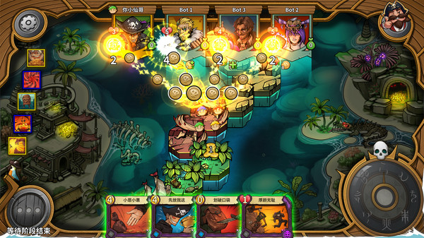 在这款游戏中,大家会共同探索由红、绿、黑、蓝四种岛屿组成的随机地图。绿色岛屿藏着金币和好运,红色岛屿充满危险,黑色岛屿带来无法防御的灾难,而蓝色岛屿则提供两难选择。每回合需要根据罗盘提示推测下一步地形,并打出技能卡争夺资源或坑队友。比如用挖掘卡在绿岛捞金,或是用陷阱卡让对手在红岛掉血。游戏节奏超快,一局十分钟就能体验从合作到友尽的全过程,甚至阵亡后还能化身幽灵继续捣乱,乐趣根本停不下来。