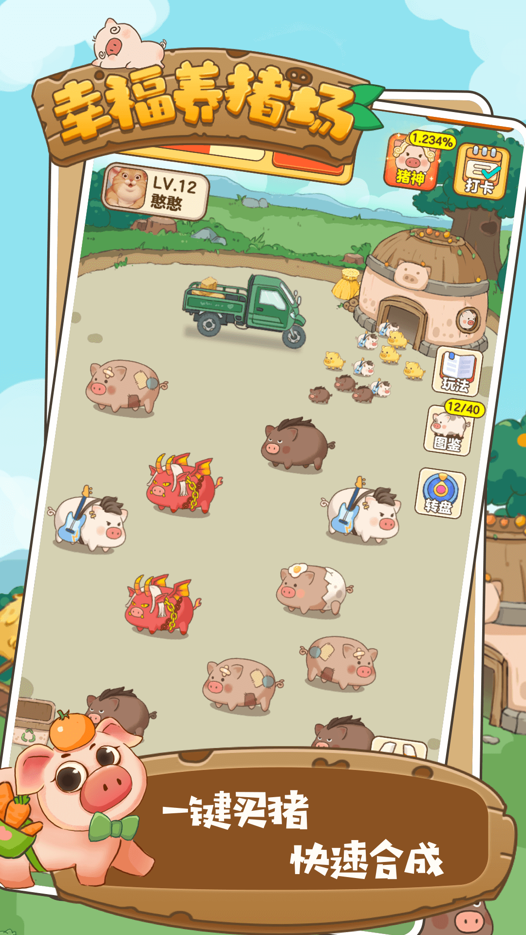 在这款玩家将从零开始建设自己的养猪场。初始系统会赠送福气值,可以用来购买小猪。通过将两只相同等级的小猪合成,就能获得更高等级的猪。随着猪的等级提升,产能也会增加,能够自动生出普通小猪和现金小猪。游戏还设有每日任务、幸运转盘等丰富玩法,完成任务可以获得金币或红包奖励。玩家还能通过邀请好友加入游戏来获取额外收益。游戏支持挂机玩法,即使不操作也能持续获得收益,非常适合碎片时间游玩。