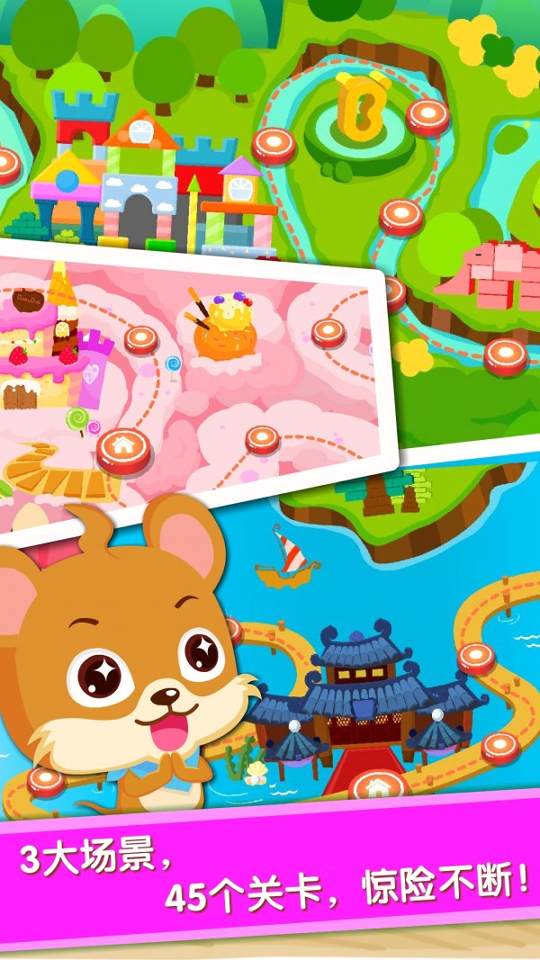 游戏通过三大维度提升儿童能力:脑力开发:45个关卡按难度分级,从基础分配到多角色复杂关系处理,逐步强化空间推理与资源分配能力。情境化教学:将狗追骨头、猫捉老鼠等常识转化为可视化互动任务,比传统说教更易理解记忆。错误安排触发角色动画提示(如骨头小姐哭泣),引导自主优化方案。