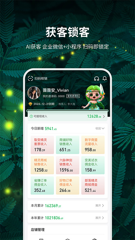 该应用以精灵六脉神剑系统为核心架构,覆盖营销全链路闭环:从AI智能获客引流起步,通过企业微信和小程序实现精准触达目标客户,再结合裂变精灵工具促进用户自发传播,最终依托私域运营和数字商盟完成客户留存与转化。商家可一站式管理店铺运营,实时处理商品上下架、订单跟踪、数据统计等核心业务,同时支持近场支付与远程收款,集成微信、支付宝、银联等多通道安全支付系统。平台还提供五大品类供应链支持,涵盖水果生鲜、日用家居等刚需商品。